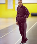 100% brushed tricot polyester • 7.1-oz. • covered elastic waistband and draw-cord • 2 deep side pockets • white leg piping • 12" side leg zipper • open-bottom with double hem snaps • left hip logo embroidery • Sizes: XS-4XL