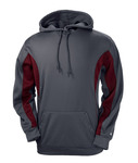 100% polyester fleece moisture management fabric • front and back contrast inserts with piping • front pouch pocket with two self-adhesive closure top pockets • poly rib cuffs and waistband • embroidered logo on left sleeve • Sizes: XS-4XL