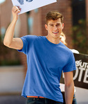50% combed ring-spun cotton/50% polyester • 4.2-oz. • 30 singles for softness • shoulder-to-shoulder taping • double-needle sleeves and hem • Sizes: S-2XL