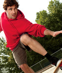 ring-spun 60% cotton/40% polyester • 9.5-oz. • two-ply hood with draw cord • front pouch pocket with opening for headset • paneled shoulder for maximum movement • spandex-reinforced rib-knit cuffs and waistband • embroidered logo on left sleeve cuff • Sizes: XS-6XL