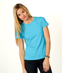 100% combed ring-spun cotton jersey • 5.5-oz. • top-stitched ribbed collar • taped neck • double-needle hemmed sleeves and bottom • softly shaped for a classic feminine fit • white is sewn with 100% cotton thread • Sizes: S-3XL