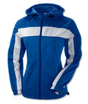 100% brushed tricot polyester • 7.2-oz. • double-ply hood with bungee cord and two toggles • contrast body and sleeve panel inserts • two front pockets with headset opening • covered elastic cuffs • Sizes: XS-2XL