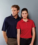 100% polyester • 4.1-oz. • moisture-wicking micro-pointelle mesh • side seam construction • self-fabric collar • double-needle topstitching on armholes • double-needle hemmed sleeves and bottom • reinforced placket with three cross-stitched smoke pearlized buttons • clean finished side vents • tagless • Sizes: S-3XL