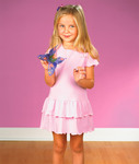 100% combed ring-spun cotton jersey • 5.5-oz. • Coverstitched ribbed collar • Ruffle raw serge sleeves • Shirred skirt with double-ruffle bottom • White is sewn with 100% cotton thread • Sizes: 2T-5/6T