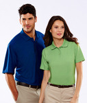 now available from XS-6XL • easy-care 100% polyester • 5-oz. • moisture-wicking • Relaxed Fit • UPF 30 sun protection • shrink- and wrinkle-free • flat-knit collar • 3-button placket • double-needle cuffs and bottom hem • pearlized buttons • side slits • tagless • Sizes: XS-6XL