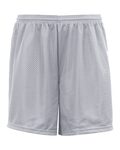 100% Polyester mesh with solid tricot liner • 6" inseam • 1 1/2 covered elastic waistband and drawcord • Sizes: XS-L